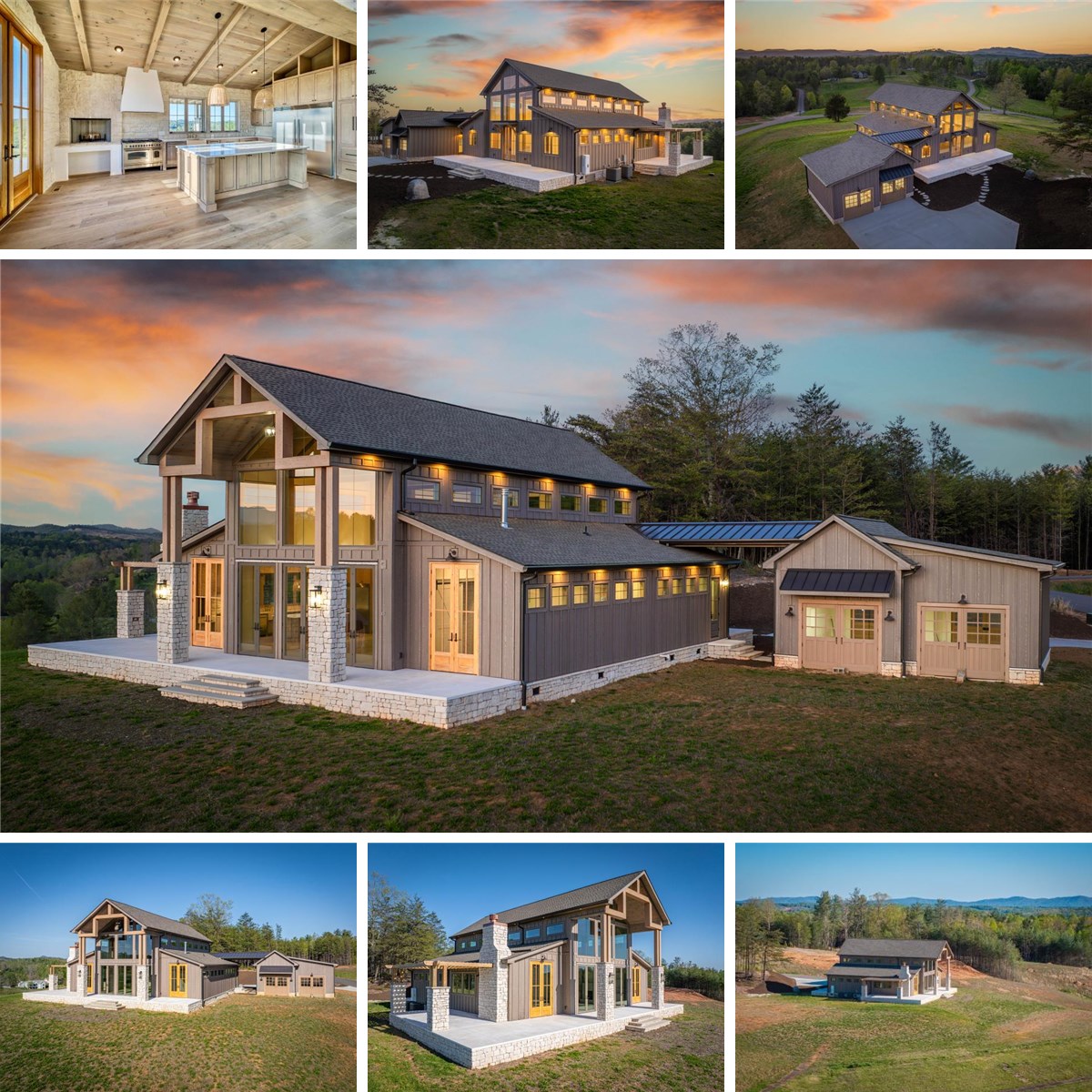 - Barn inspired exterior of post and beam construction blended with contemporary rustic features and quality components