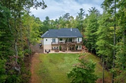 Beautiful 2025 custom home with a private-entry studio located in The Arbor, a cherished, gated community on Lake James. Expansive windows, 8-ft glass doors, and 10-ft ceilings showcase stunning, forest-framed mountain views. The open-concept great room flows to full-length back decks—three below, one plumbed for a hot tub. Enjoy a lush yard with fire-pit, BBQ, and picnic area. The bright interior boasts wide-plank oak floors, Medallion cabinets, and leathered quartz throughout. Gourmet kitchen includes baker’s oven, butler’s pantry, and Dobson's Knob views. Spacious primary suite has recessed ceiling, balcony access, custom closet with window seat, and a spa-like ensuite with 3-head shower. Guest rooms offer deep closets, built-ins, and balcony access. Guest bath includes cast-iron tub and spa shower. Oversize 2-car garage with workspace. The 320-sq-ft studio includes full bath, vanity, and sitting area. Fiber optic internet and boat slip on Lake James included. STRs allowed.